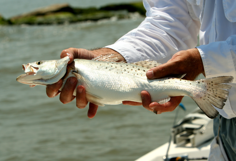 Sea Trout might not be the biggest fish in the bay, but they're absolutely one of the most fun to catch on light tackle. These spotted beauties average 14-18 inches, with keeper-sized fish being plentiful during cooler months. They've got this unique way of hitting a bait – sometimes subtle, sometimes aggressive – and they jump like crazy when hooked. Trout are also excellent table fare, which makes them a customer favorite for families looking to bring dinner home.